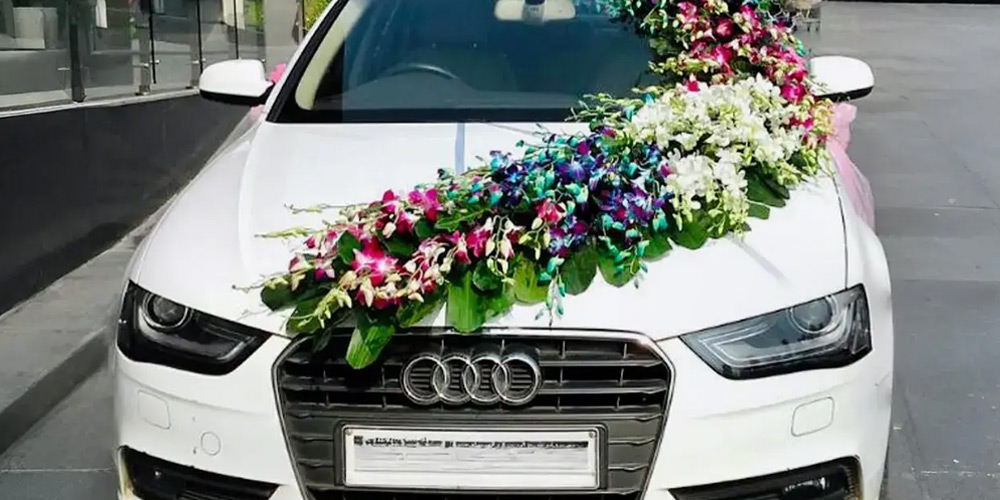 Our team designs beautiful car decorations using fresh flowers, ribbons, and creative themes to make the bride and groom’s ride look stunning and memorable.